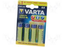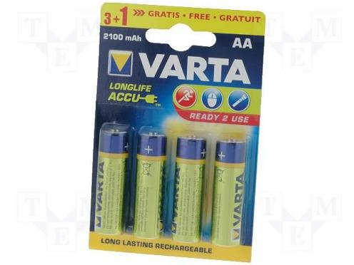 Výrobca VARTA Typ batérie Ni-MH Verzia spotrebiteľská Veľkosť článku AA Veľkosť článku R6 Menovité napätie 1.2V Objem 2100mAh Výrobná séria LONGLIFE Vývody nie je Druh balenia blister Vlastnosti akumulátorových batérií vysoký + Počet akumulátorov 4