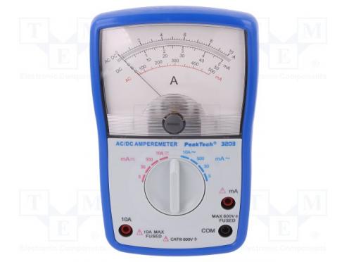 Výrobca PEAKTECH Typ meracieho prístroja ampérmeter Vlastnosti meracích prístrojov nárazuvzdorné puzdro (holster) Druh použitého displeja analógový Rozsah merania prúdu DC 5mA Rozsah merania prúdu DC 50mA Rozsah merania prúdu DC 500mA Rozsah merania prúdu DC 10A Rozsah merania prúdu AC 5mA Rozsah merania prúdu AC 50mA Rozsah merania prúdu AC 500mA Rozsah merania prúdu AC 10A Presnosť merania prúdu DC ±3% Presnosť merania prúdu AC ±4% Zdroj napájania batéria LR6 AA 1,5V x2 Štandardná výbava meracie káble Štandardná výbava puzdro Meranie prúdu AC Meranie prúdu DC Zhodné s normou EN61010 600V CAT III Hmotnosť 300g Rozmery 100x155x45mm