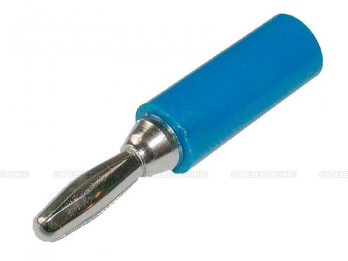 Banánek na kabel, barva modrá, šroubovací, Napětí AC/DC = 25/60 V Proud = 10 A Přechodový odpor = 5 mOhm Průměr vidlice = 4 mm Příčný otvor = Ne