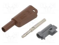 Banánik 4mm 19A 1kV hnedá izolované,so zdierkou 4mm v osi - Popis produktu