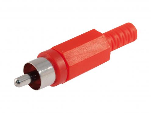 Konektor CINCH na kabel, samec, červený, plast.