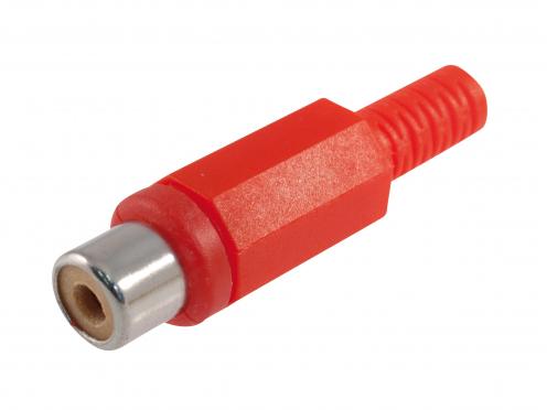 Konektor CINCH na kabel, samice, červený, plast.