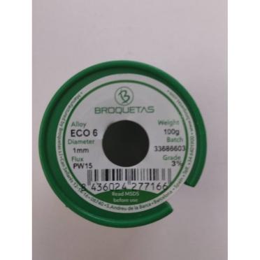 BROQUETAS ECO 6 (Sn95,5 Ag 3) FLUX PW-15; 1 mm; 100 g cínová pájka
