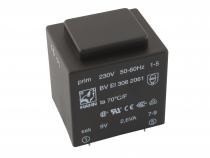 EI transformátor do DPS EI 30/23, 1x9 V Výkon = 2,6 VA, U prim / sek = 230 V / 1x9 V, I = 289 mA, Rozměry : 32,5 x 27,5 x 34 mm Hmotnost : 0,135 kg HAHN BV EI 306 2061
