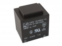 EI transformátor do DPS EI 30/23, 1x12 V Výkon = 2,6 VA, U prim / sek = 230 V / 1x12 V, I = 217 mA, Rozměry : 32,5 x 27,5 x 34 mm Hmotnost : 0,135 kg HAHN BV EI 306 2062