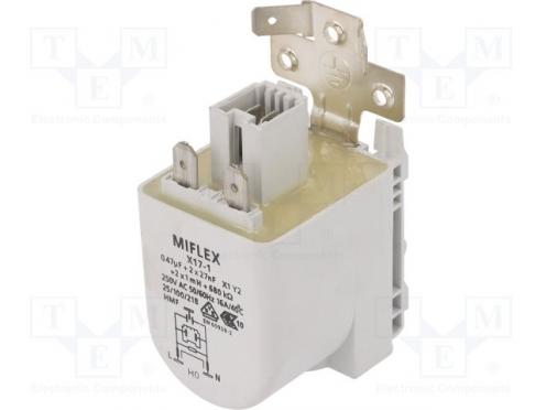 Výrobca MIFLEX Typ filtra odrušovacia Indukčnosť jedného vinutia 1mH Kapacita Cx 0.47µF Kapacita Cy 27nF Odpor 680kΩ Max. pracovný prúd 16A Vývody konektory 6,3mm Materiál krytu plast Pracovné napätie 250V AC Súvisiace články MX-94550-4202