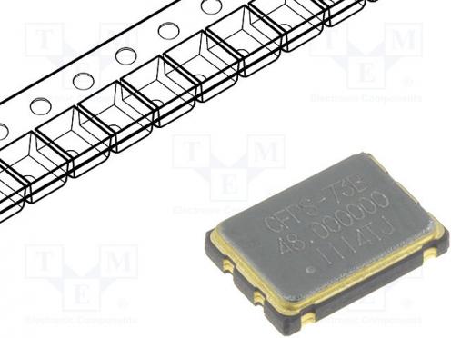 Oscilátor kryštálový 48MHz SMD Rozm 7x5mm 3,3V ±50ppm 0÷70°C