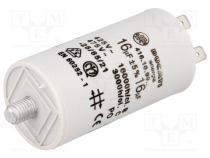 Kondenzátor pre motory, pracovný 16uF 425VAC Ø36x70mm ±5% - Popis produktu