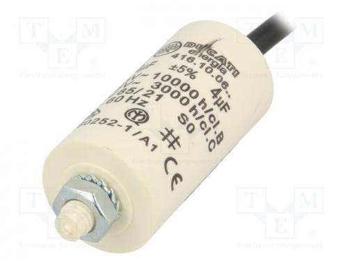 Kondenzátor pre motory, pracovný 4uF 425VAC Ø28x55mm ±5% - Popis produktu
