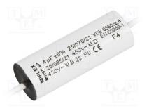 Kondenzátor pre motory, pracovný 4uF 450VAC Ø15x47mm ±5% - Popis produktu