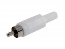 Konektor CINCH na kabel přímý, vidlice, bílá, plast.