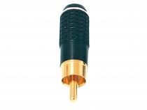 Konektor CINCH na kabel přímý, vidlice, černá s bílým pruhem, kov.