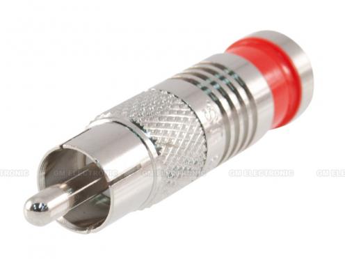 Konektor CINCH na kabel přímý, vidlice, červený pruh, kov.