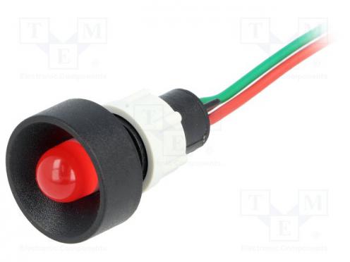 Kontrolka LED vydutá 24VDC 24VAC Otv Ø13mm IP40 vodiče 300mm