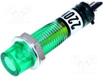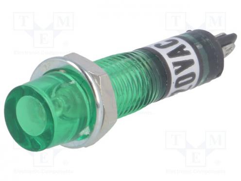 Kontrolka s tlejivkou FLUO vydutá zelená 230VAC Otv Ø7,5mm