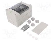 | Použitie škatuliek | pre montáž sériovými svorkami na prípojniciach DIN |