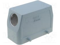 Výrobca TE Connectivity Typ krytu pre hranaté konektory Séria konektoru HTS Puzdro rozmer 6 Systém zabezpečenia na dvojitou západkou Závit priechodky M25 Upevnenie vložky 77,5x27mm Mechanická montáž na kábel