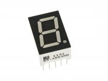 LED displej 14,2 mm, barva: červená Počet znaků: 1 Společný vývod: anoda Barva: červená Desetinná tečka: vpravo Max. proud segmentem: 30 mA Úbytek napětí v propustném směru: 1,9-2,5 V Svítivost: 3 mcd Zapojení číslic: samostatné vývody
