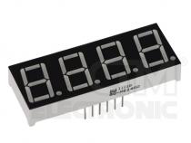 LED displej 14,2 mm, barva: červená Počet znaků: 4 Společný vývod: anoda Barva: červená Desetinná tečka: vpravo Max. proud segmentem: 30 mA Úbytek napětí v propustném směru: 1,9-2,5 V Svítivost: 3,5 mcd Zapojení číslic: maticové