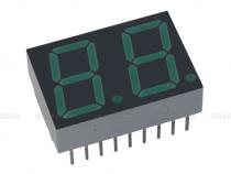 LED displej 14,2 mm, barva: zelená Počet znaků: 2 Společný vývod: anoda Barva: zelená Desetinná tečka: vpravo Max. proud segmentem: 30 mA Úbytek napětí v propustném směru: 2,1-2,5 V Svítivost: 2,5 mcd Zapojení číslic: samostatné vývody