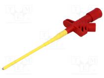 Výrobca SCHÜTZINGER Typ meracieho príslušenstva merací hrot s háčikom Druh meracieho hrotu kliešťový Menovitý prúd 6A Farba čierna Povrch kontaktu poniklovaná Materiál izolácie polyamid Veľkosť zdierky 4mm Celková dĺžka 163mm Zhodné s normou EN61010 1000V CAT II Pracovná teplota -25...80°C Max. odpor kontaktu 50mΩ