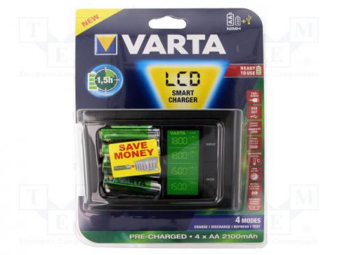 Výrobca VARTA Typ nabíjačky mikroprocesorová Druh akumulátora Ni-MH Veľkosť článku AA Veľkosť článku AAA Veľkosť článku R3 Veľkosť článku R6 Vlastnosti nabíjačky detekcia poškodených batérií Vlastnosti nabíjačky vybitie akumulátorových batérií Vlastnosti nabíjačky výstup USB 5V Signalizácia LCD displej Verzia spotrebiteľská Verzia vidlice EU Batéria / akumulátor akumulátor Ni-MH AA 1,2V 2100mAh x4