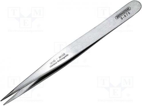 Typ náradia pinzeta Dĺžka pinzety 130mm Použitie náradia SMD Použitie náradia na precízne práce Tvar hrotov priame Tvar hrotov špicaté Vlastnosti pinziet nemagnetická Vlastnosti pinziet matný povrch Materiál nerezová oceľ Hmotnosť 16g Odolnosť voči väčšina kyselín Výrobca BERNSTEIN