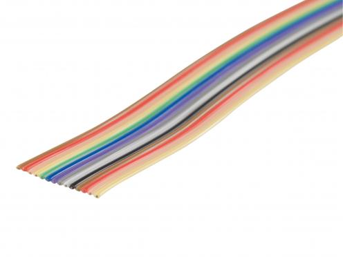 Plochý kabel barevný 14-žílový Rozteč vodičů RM: 1,27mm Průřez vodičů S: AWG28 (0,081mm2) Izolační odpor Ri: >100MOhm/km Zatížení: 1A/250V Balení: 30m