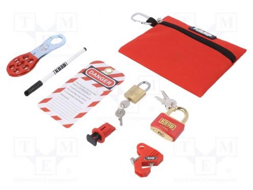 Výrobca KASP Typ prvku BOZP poistková zámka Použitie BZOP chráni pred náhodným zapnutím poistky Použitie BZOP pri elektroinštalačných prácach Súprava obsahuje 2x visací zámok + 2 kľúčiky Súprava obsahuje bezpečnostná petlica Súprava obsahuje fixka Súprava obsahuje informačná visačka Súprava obsahuje karabína na kľúče Súprava obsahuje poistková zámka Súprava obsahuje puzdro