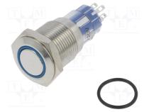 Prepínač odolný vandalom DPDT 3A/250VAC IP67 ON-(ON) modrá