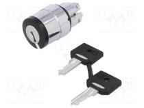 Prepínač otočný s kľúčom 3 polohy 22mm čierna Podsv žiadne - Popis produktu