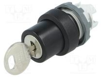 Prepínač otočný s kľúčom 3 polohy 22mm čierna Podsv žiadne - Popis produktu