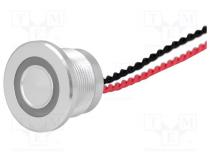 Výrobca ONPOW Typ prepínača piezoelektrický Počet všetkých polôh 2 Usporiadanie kontaktov SPST-NO Zaťažiteľnosť kontaktov AC @R 0.2A / 24V AC Zaťažiteľnosť kontaktov DC @R 0.2A / 24V DC Stupeň ochrany IP68 Spôsob prepínania OFF-(ON) Podsvietenie LED Podsvietenie prstencové Farba podsvietenia červené Napätie podsvietenia 12V DC Vývody vodiče 30mm Pracovná teplota -40...75°C Elektrická životnosť 50000000 cyklov Max. prúd kontaktov 0.2A Sila pre prepnutie 6N Rozmery montážneho otvoru Ø22mm Tvar tlačidla plochý Materiál korpusu hliník Farba telesa strieborná Spínané napätie max. 24V AC Spínané napätie max. 24V DC Počet stabilných polôh 1