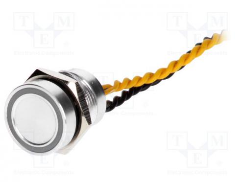 Výrobca ONPOW Typ prepínača piezoelektrický Počet všetkých polôh 2 Usporiadanie kontaktov SPST-NO Zaťažiteľnosť kontaktov AC @R 0.2A / 24V AC Zaťažiteľnosť kontaktov DC @R 0.2A / 24V DC Stupeň ochrany IP68 Spôsob prepínania OFF-(ON) Podsvietenie LED Podsvietenie prstencové Podsvietenie úzke Farba podsvietenia žltá Napätie podsvietenia 12V DC Vývody vodiče 30mm Pracovná teplota -40...75°C Elektrická životnosť 50000000 cyklov Max. prúd kontaktov 0.2A Sila pre prepnutie 6N Rozmery montážneho otvoru Ø16mm Tvar tlačidla plochý Materiál korpusu hliník Farba telesa strieborná Spínané napätie max. 24V AC Spínané napätie max. 24V DC Počet stabilných polôh 1
