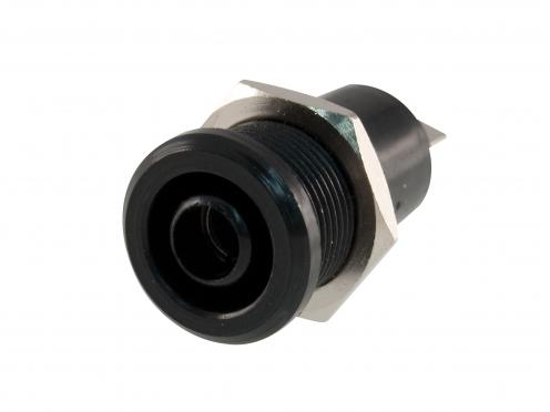 Panelová zdířka, barva černá, počet kontaktů 1, Napětí AC/DC = 1000 V Proud = 25 A Přechodový odpor = 3 mOhm Průměr zásuvky = 4 mm Průměr montážního otvoru = 12 mm