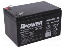 Výrobca BPOWER Typ batérie kyselinovo-olovené Menovité napätie 12V Objem 12Ah Technológia AGM Vlastnosti akumulátorových batérií bezúdržbový Vonkajšie rozmery 151x98x101mm Životnosť 6-9 rokov Vývody konektory 6,35mm Hmotnosť 3.8kg Použitie akumulátorový batérií poplašné systémy Použitie akumulátorový batérií systémy nepretržitého napájania Výrobná séria BPE