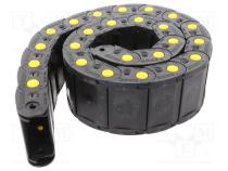 Výrobca BREVETTI Typ príslušenstva ku káblom vodiaca reťaz Výrobná séria MEDIUM Polomer ohybu 50mm Dĺžka 1000mm Verzia rámy otvárateľné z vnútorného polomeru Verzia so žltými kolíkmi Vonkajšia výška 35mm Vonkajšia šírka 82mm Vnútorná výška 25mm Vnútorná šírka 60mm Farba čierna