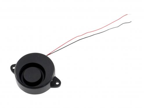 Sirénka signální s kolísavým tónem, fo=1.5-3.5kHz, 12V DC, min. 100dB, 300mA. Rozměr 68x18mm.