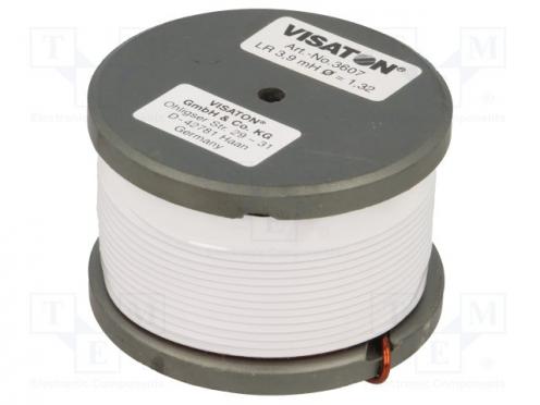 Výrobca VISATON Typ tlmivky cievka Indukčnosť 3.9mH Odpor 0.28Ω Saturačný prúd 11.5A Priemer 56mm Výška 36mm Použitie tlmiviek audio zariadenia Priemer jadra 1.3mm