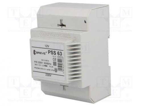 Transformátor sieťový 63VA 230VAC 12V Výv svorkovnica DIN