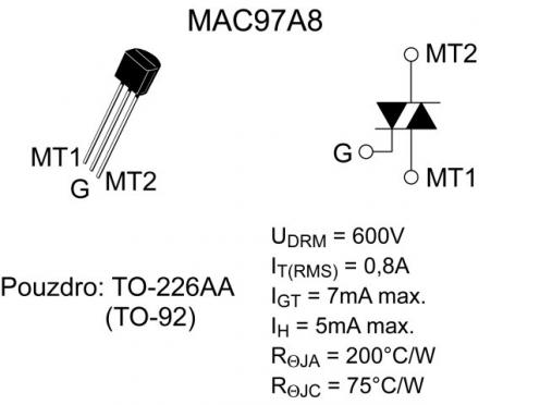 Triak 600V/0,6A MAC97A8 - Popis produktu
