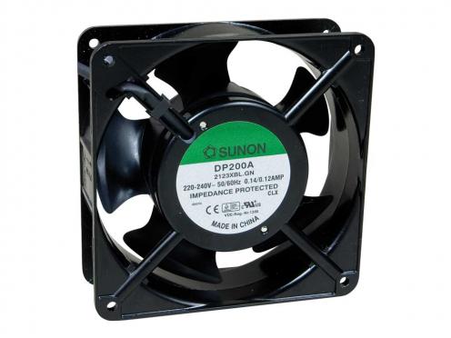 Ventilátor Sunon 120x120x38,8mm 220-240 VAC/140 mA, Příkon = 22,00 W, Otáčky = 2850 RPM, Ložisko = kuličkové, Průtok vzduchu = 97 CFM/ 164,80 m3/h, Hlučnost = 45,0 dBA Vývody = 2x24AWG, Délka vývodů = 310,0 mm Hmotnost = 524,0 g Poznámka: Označení výrobce: DP200A.2123XBL.GN