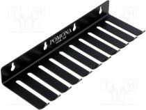 Typ meracieho príslušenstva vešiak na meracie káble Počet drážok 10 Materiál oceľ Dĺžka 279.4mm Šírka 88.9mm Farba čierna Šírka štrbiny 8.13mm Výrobca POMONA