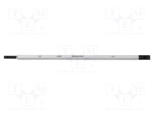 Výrobca BERNSTEIN Typ náradia vymeniteľná čepeľ Typ hrotu plochý Druh skrutkovača obojstranný Veľkosť hrotu 2,5x0,6mm Veľkosť hrotu 4,0x0,9mm Celková dĺžka 120mm