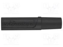 Konektor zásuvka Typ konektora banánik 2mm Menovité napätie 70V DC Menovitý prúd 10A Celková dĺžka 24.5mm Farba čierna Povrch kontaktu poniklovaná Montáž na kábel Pripojenie spájkovanie Pracovná teplota -25...90°C Priemer vodiča max. 2mm Výrobca SCHÜTZINGER