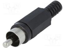 Zástrčka RCA vidlica s vývodkou priamy spájkovanie čierna - Popis produktu