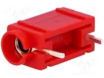 Zásuvka banánik 4mm 24A 60VDC červený postriebrené PCB 24mm - Popis produktu
