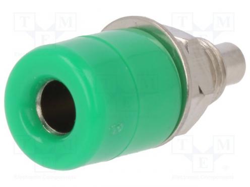 Zásuvka banánik 4mm 20A Otv Ø7,5mm zelený poniklovaná 5mΩ - Popis produktu