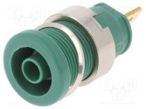 Zásuvka banánik 4mm 25A 1kVDC zelený pozlátený 32mm 5mΩ - Popis produktu
