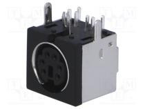 Konektor zásuvka Typ konektora DIN mini Druh konektoru zásuvka Počet pinov 6 Elektrická montáž THT Priestorová orientácia uhlové, 90°